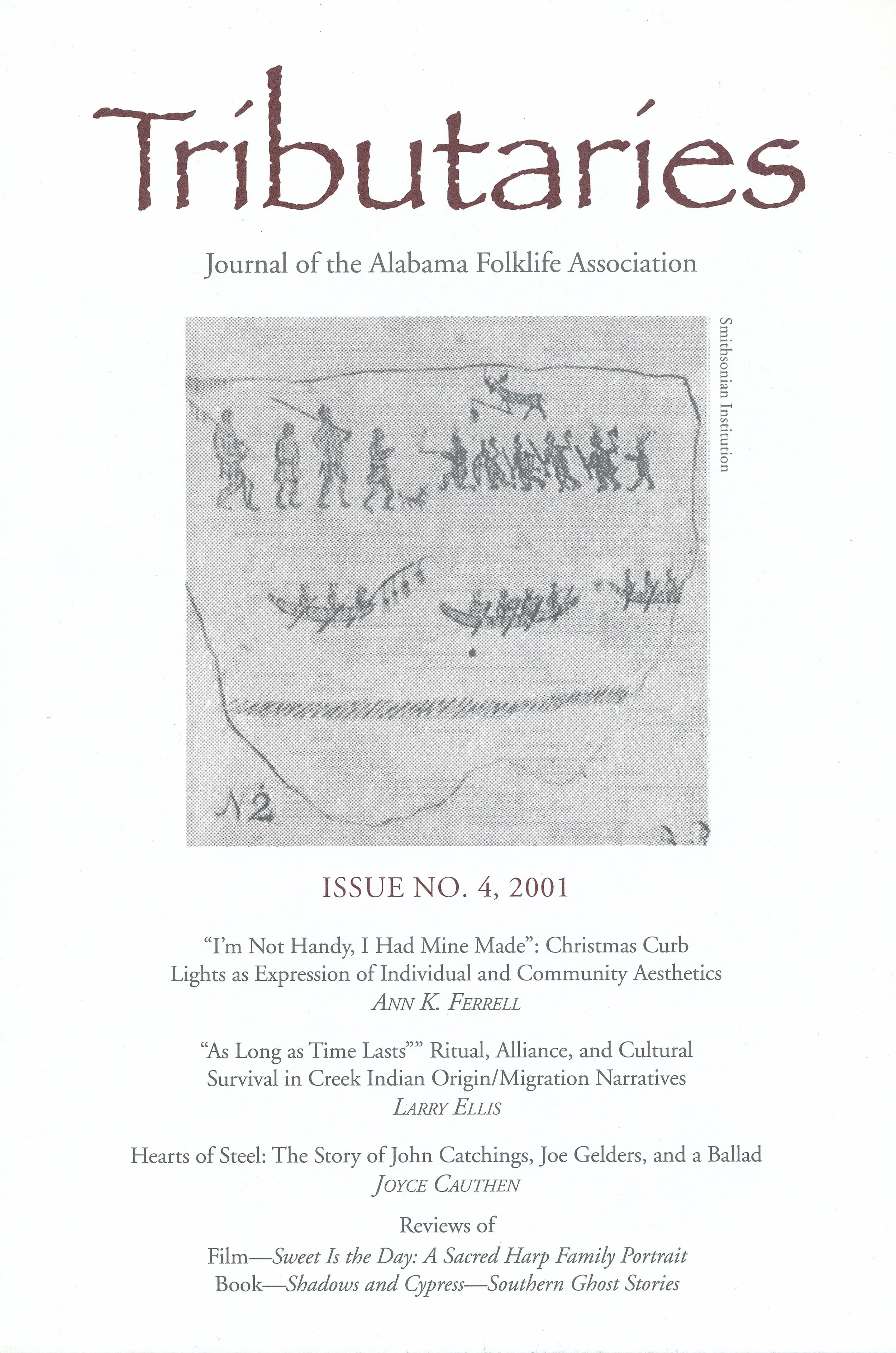Tributaries, journal of the Alabama Folklife Association, contains 19 volumes that explore Alabama folk traditions of all kinds, representing a wide spectrum of Alabama history, culture, art form, and environment.